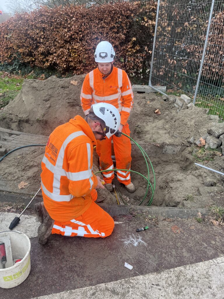 • 18 verbindingsmoffen, 100 meter mantelbuis & 60 meter straatwerk
